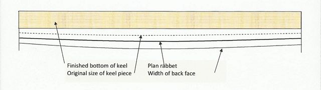 When we come to the keel, we have choices. Beginning at the stem, they come in two types which I have shown here. With the first, the rabbet and inner rabbet are so close in a line they won't show on the profile.