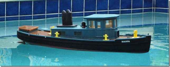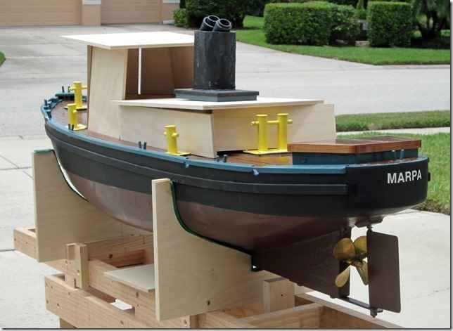 Here's Paul's tug boat with the cabin mock up and stack on. He's really doing some detail work on this one.
