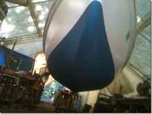 Steve had his gloves on and is always up to trying something new. It takes about three ounces of epoxy to coat this 13 foot boom, he kept brushing it on till we had 15 ounces on this slowly turning spar. It dried hard with no runs, looks like it's an eight inch thick.