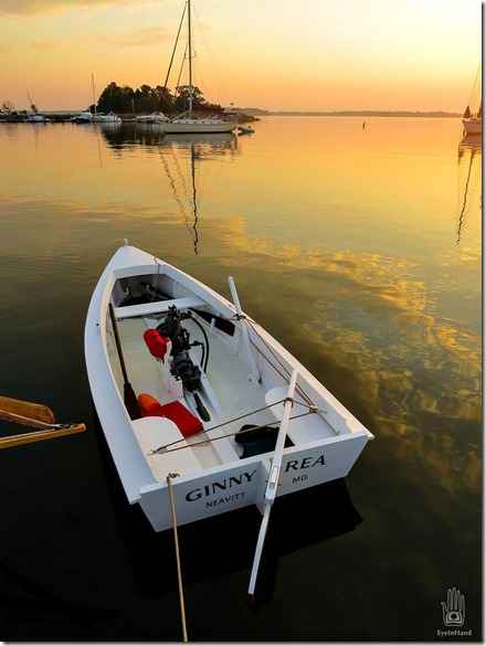 This one is from pictures that Barry Long took at the small craft festival at St Michaels, Md last week. The guys and I had planned on going but then my hip fell apart and I wouldn't let them go without me. I'm all fixed up now but still missed this great gathering. You don't even have to bring a boat if you don't want to. You can fly up to Baltimore, rent a car and have a fun week there. There was no wind to speak of this time but it's still a great place to go to in Oct. For more pictures of this gathering click on Barry's link.