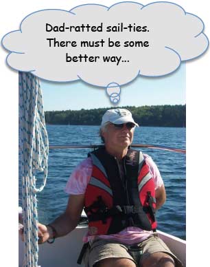 Months later, the idea for the Stow-A-Way came to me when I was thinking back on that situation and wondering what I could or should have done differently. I recognized that I was reluctant to leave the helm in such strong wind to get my sail ties from where they were stowed below, or to tie the sail down.