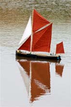 Peter Simmonds lives on Britain’s Isle of Wight in the Channel Islands and is a model Thames Sailing Barge enthusiast, fairly regularly travelling by ferry and car to other parts of Britain to take part in the model Thames Barge racing regattas staged in various parts of the East Coast and Kent by the Association of Model Barge enthusiasts. Several years ago the writer took to Britain and presented to the association a trophy for yearly competition by those sailing barges with a bowsprit, and last year. Peter won the event sailing one of three barges he owns and sails called Haughty Belle.