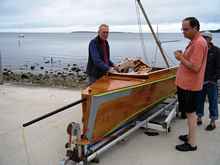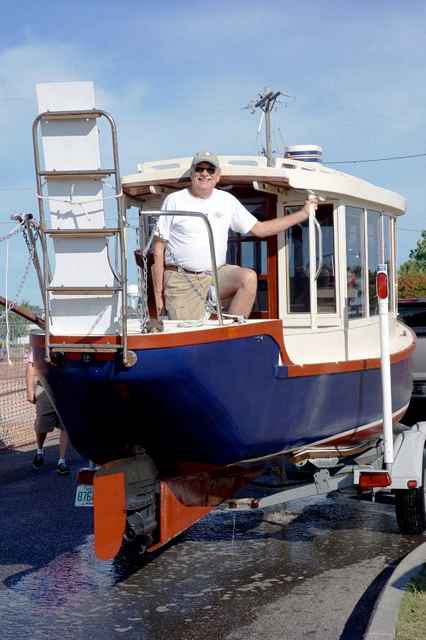 In the picture of me on Helen Marie I was hoping that they'd get a picture of the water blasting out the bottom of the boat but I think they were mesmerized watching it come out. You can see some draining. There are two 2 inch holes in the bottom that drain 90 gallons of water when the boat is pulled and it is quite a show, some of the spectators even had to crawl under to see where it was coming from.