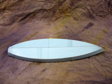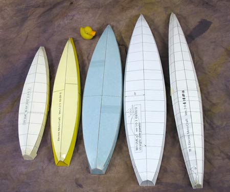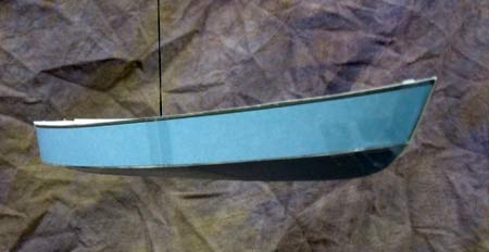 It took me three model hulls to come up with the final design of the scaled up 14 foot version that I liked.   I actually had the finished model on the first try, but when I changed the fullness of the bottom panels, I had to change the “arc lengths” of the matching edges on the bottoms of the side panels.   I also changed the shape of the transom a bit, and redid the way the two side panels are laid out to reduce the lofting involved.  The second hull was used in making the latest “Tank Test” video on my YouTube page, but the final hull will have lower/narrower side panels to reduce the total weight, make it easier to paddle if you want to, and it just plain looks better.