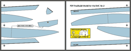 I decided to add this larger version of the Electric Moto Craft to my growing fleet of EMC hulls after a comment and request from one of my YouTube subscribers.  He had been watching one of my how-to videos on building the 14ft version of the EMC, and asked about whether or not the 14ft EMC could carry two people.  I told him no, that the hull couldn't carry the total weight that he had suggested, but I would think about “lofting up” the hull to a longer and wider version.  I had other hulls I was working on at that time, and didn't want to commit to adding this hull to the list.  But never being one not take up a challenge.  I took a few minutes one day to scale up the lines of the 14 foot hull to 18 feet, to see how much work it would be, and printed out a copy of this “stretched” hull to see how it looked in a cardboard model and how the panel parts matched up.  I just have to “scratch the mental itch” when it occurs.