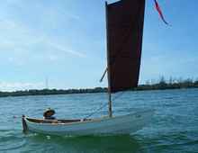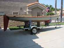 By the way, a long time ago I sent some pictures of a boat that Mark was building out in California. He designed it himself using some old Herreshoff plans for inspiration. He says it sails like a dream and goes to weather like it wants to. You can see why if you look closely at the picture of it on the trailer. That long skinny board you see in front of the wheel is it's dagger board I guess, the thing must be ten feet long. It wouldn't work here in the shallow water we have but is just the thing in Southern Cal. It sure would be nice to see a picture with it's sail up Mark.