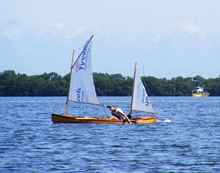 There were lots of those giant three engine racing looking boats going out for a fishing tournament. I notice that none of us took a single picture of any of them. Simon was there again with his dam Pesky Goat Island Skiff (capital P). For a simple, cheap (unless you finish it like he did) boat this thing really goes. I would definitely recommend this boat for anyone who wants an easy to build performance boat. It wouldn't work for me because it doesn't have a wide deck to keep the water out when I screw up and heel way over.
