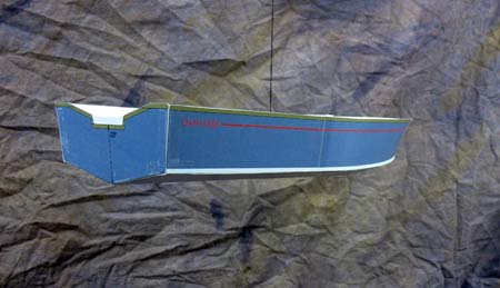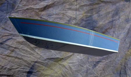 Enjoy putting this PDF model together and making “your interior” for it. Just remember to keep the hull balanced. Put your model on a round pencil and find the balance point, and mark that location. As you model your interior, make sure the model still balances around that initial point. Have fun. You can also layout the PDF panels on thin model aircraft plywood, and make a wooden version of your hull. Enjoy.