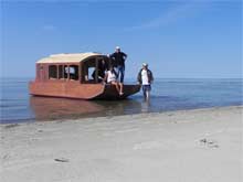 My wife has made it clear she does not care for my "beach cruising" sailboat, "Whisper". To her credit she and our son have joined me on many outings and as long as I keep the "tippy" boat under control all ends well. I've had dreams of expanding my sailing horizons and designed several sailboats (started building one) but not including my wife was not an option for me, so little came of these designs. One day she commented that "if we had a more comfortable boat I'd go out more often". It got me thinking. The result is a "Mini" houseboat that is fairly easy to build from materials largely available at local lumberyards, which doesn't look too much like a box.