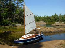 For my sons entire life (he's now 16) we've been exploring Georgian Bay, Ont., Can., and the many lakes in the region. My pleasure has come in part from sneaking over a shallow bar to access areas like this, secluded and wild! We are also able to pull up to a beach and step off without getting our feet wet. I wanted the new "camp" boat to do the same. Shallow draft, 6", ensures this. Also we've enjoyed cruising long distances using very little fuel. The "house" boat can handle a large motor but a 9.8 hp will encourage our exploring without the worry of a prohibitive fuel bill. I was able to trailer the sailboat to new exciting areas and the "shanty" boat will do the same. At 17' X 8' it is legal on all roads and a loaded weight around 1600 lbs will be comfortably managed. I wanted a cabin in the woods but the expense of land and the time needed for maintenance discouraged me. This "cabin" on the water makes a cozy cove home for as long as we choose, our land is a step off the bow and then left to others to enjoy when we depart. While travelling the road it can double as a "camper" at a camp ground or shopping centre.