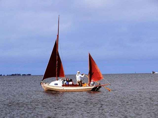I've included a few more of Steve's tiny ketch rigged Wee Lassie. He's actually out in the ocean with the rest of us "big" boys in this eleven foot long, twenty pound open canoe and loves it and does just fine.