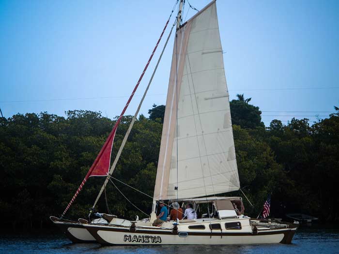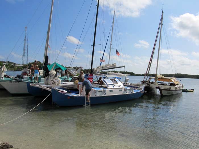 The owners were pleased to show off their boats and “talk shop” with everyone. We expect a few new boats to be in build by this time next year! There were three Tangaroas (36’), a Tiki 30, a Tiki 26 (8M), a Pahi 31, and a Narai 42 that was nearby. The Pahi sailed in more than 500 miles to attend. A Tiki 21 almost made it from more than 200 miles away but was becalmed for an extended period in the maze of islands that make up the Florida Everglades and got within about 35 miles of the event, but the sailors made it by bus!