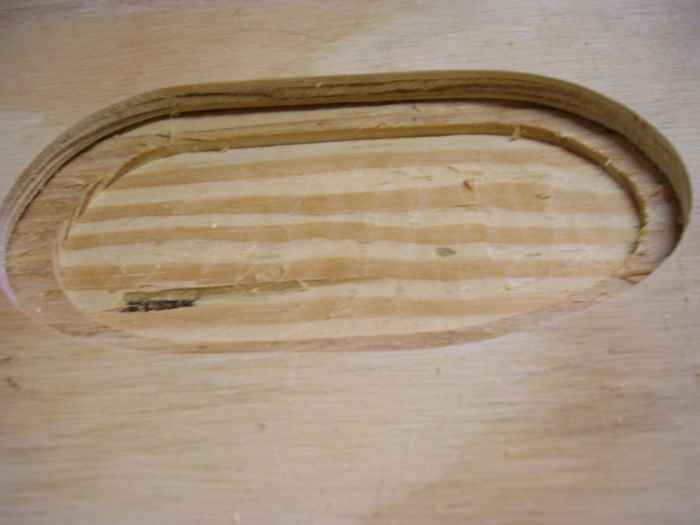 If you study the picture carefully, you can probably see the patches aren't a perfect fit, but much better than the as purchased plywood. One can buy bushings and patterns for creating Dutchmen that will do a much better job, but again I'll refer you to the first two words of the article. Okay, I admit it isn't just those two words; I also enjoy figuring out how to do this stuff!