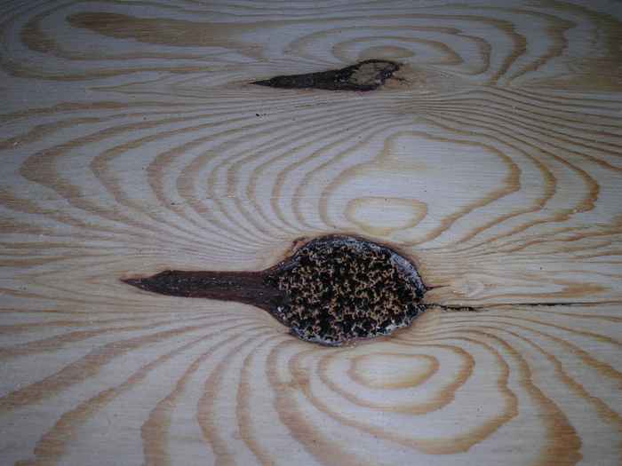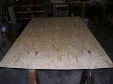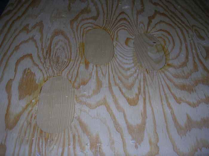 | I'm cheap; hence I'm using cheap plywood which has knot holes in one of the faces. By examining the edges of the sheet, it appears to be relatively void free in the core, but the exterior face wasn't so pretty.