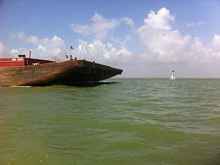I threw this in, as the picture is priceless... the Mystic Wind is literally 40 Yards at best off the port side of the barge.
