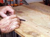 Back to the setup on the drill press. Its not easy to line the grain up when dealing with such small pieces, so if this is going to be an issue it will help to put a fine line along the wood centred on the line of plugs to be cut. This line is used to indicate the grain direction when fitting.
