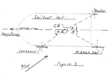 The Standard Sail Rigging employs a Leeboard on an asymmetrical basis; the Leeboard is employed on only one side of the sailboat. The Leeboard, by default, is employed at an offset from the Center Line of the Hull. Therefore, an asymmetrical Leeboard configuration will always produce either a Drag Force By Product, or a Propulsion Force By Product.
