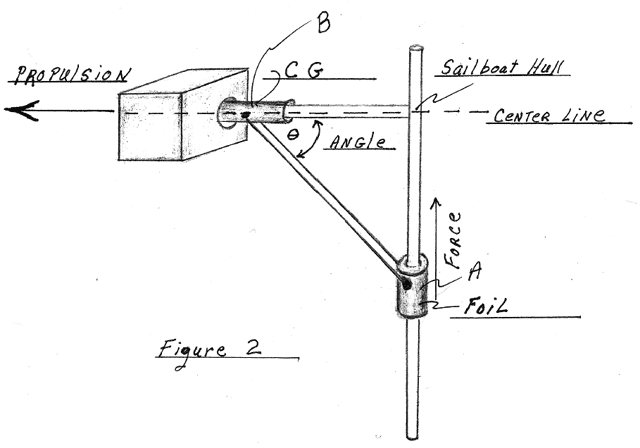Figure 3 illustrates the sum of all three Foils, when they are applied to a Sailboat Hull. Each of the Foils will Produce a Propulsion Force. The sum of the three Propulsion Forces will produce a Net Propulsion.