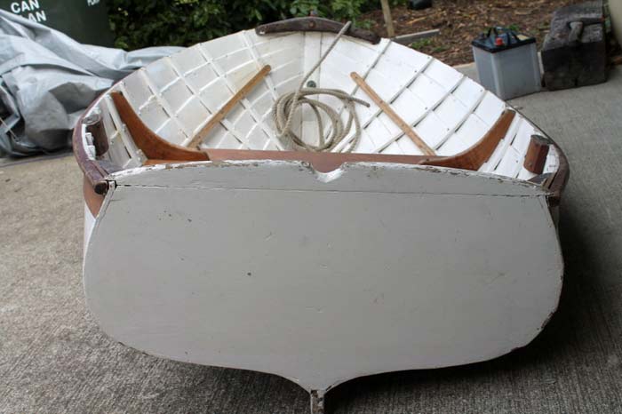 Dear Boatbuilders we have 3 vintage clinker boats we are trying to trace the history of. All these boats are New Zealand built and are a unique part of our Maritime History. The first one is a very curvy little lady and was found at Otaki tip in 2003 she is 5ft 6inch long built around 1910-1930s