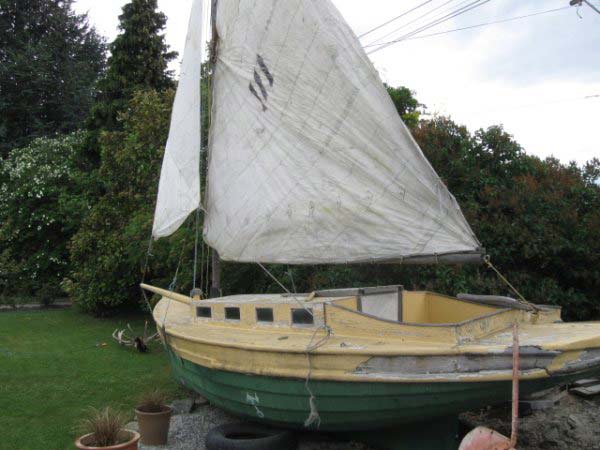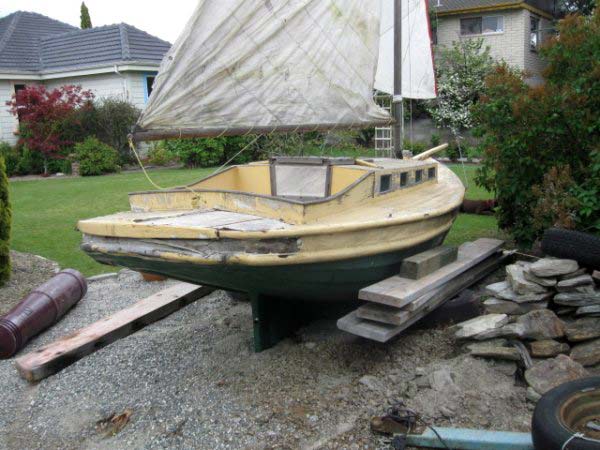 The second is a 16ft fantail oil launch built around 1895 converted to sail 1960s all the yellow area was added at this time. she sank in the Frankton arm at Queens town in 1984ish was salvaged then went to Cromwell 10 years then Alexandra 15 years as a garden ornament