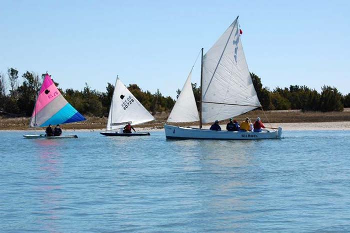 Spritsail off of Beaufort, NC with flying jib and spritted boom