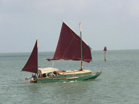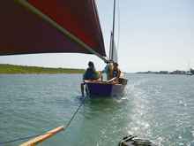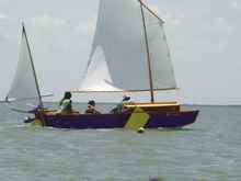When the Texas200 ended at Seadrift this year, Chris and I decided to extend our cruise through the weekend before heading home. We had enjoyed the 5-day trip from Port Isabel on Caprice, our recent purchase from Chuck Leinweber of Duckworks. Designed by Jim Michalak, Caprice is a spacious and comfortable 25 ft. shallow draft yawl with water ballast, powered by a balanced lug rig. John Goodman and his son David (age 14) and daughter Desiree (age 18) were looking for adventure, as well, and we were pleased to have them come along. John and his wife, Rosa, had just completed the Texas200 and John was looking forward to spending a few days on the water with their kids before Desiree left for the Marines. Their boat, a 19.5 ft. Hapscut named Gaz, also a balanced lug, was recently built as a family project. Inspired by his experience on the Texas200 in 2011, Jim Michalak created the simple scow with a flat bottom and square toed hull which makes it ideal for shallow water beaching and mostly downwind sailing.
