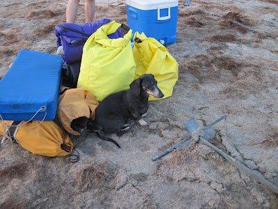 Upon retiring for the evening, Chris got out our big flashlight and swept it along the shoreline. The water was full of bait fish and a huge raccoon, at least twice the size of Major, was collecting his dinner along the beach. We could see an abundance of stars since there were no city lights to obscure their path. We had been warned of the possibility of mosquitoes and had come prepared with mosquito netting, screens, and several cans of repellent but were happy to find ourselves completely bug free. Our wind scoop sent a gentle breeze through our cabin as we slept.
