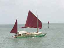 The wind was very light, as in dead calm, which is unusual for San Antonio Bay. My previous experience with this bay is that it is a horrid little area of chop, high wind, and reefs with water the color of chocolate milk. No, I do not like San Antonio Bay, although I am quite fond of Seadrift and the hospitality the town offers the Texas200 group each year. As we motored out toward the ship channel, the wind increased and we raised our sail and started the beat toward South Pass. Within an hour, we had to put the double reefs back in as the wind had increased to its customary 15 knots with gusts to 20. Caprice is faster than Gaz so we anchored close to shore late in the afternoon to allow them a chance to catch up. We offered to start up our motor and tow them but John Goodman is as hard headed as any good sailor should be and wished to make it on his own. We sailed through South Pass about 5:30 and could see the large white buildings of Army Hole off in the distance. Several long tacks later, we entered the basin at Army Hole and tied up to the pier just before sunset.