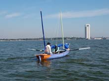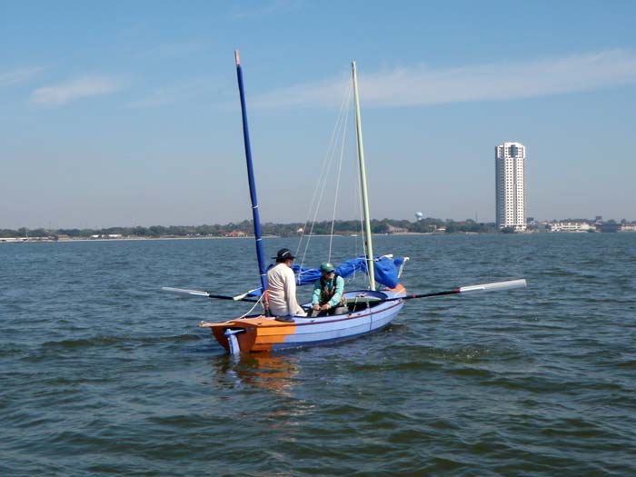 So when Gary found he would be in Houston for a week in October, we made plans to meet and sail for three days. That would give us time to sort out some issues, figure out what I still needed to do to the boat, and generally get some experience handling the boat. We had three days with predicted diminishing wind and increasing warmth so we elected to sail the first day, row the second and do capsize drills the third. We took the boat to clear lake and thanks to Tony Townsend, John Goodman and Gordon Barcomb, we had a great three days getting to know the boat.