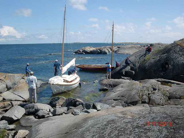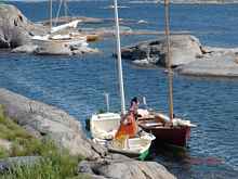 Seppo's two young friends, Ilkka and Heli, brought Seppo's 1939 O-Jolle (a wooden German design racing sloop, built for the 1940 Helsinki Olympics which did not occur) from central Finland to sail with us.