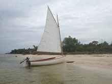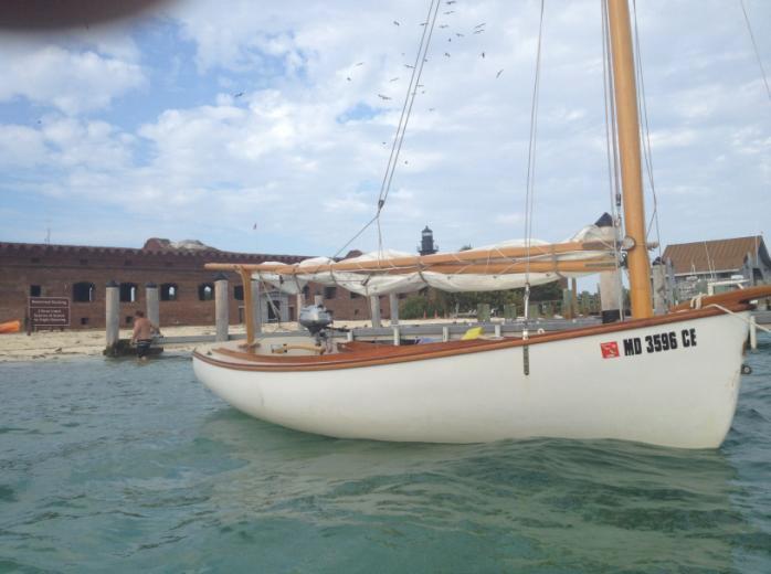 We found the lakes passage a little too shallow for upwind work with any centerboard, so we ran off to the north and searched for an anchorage. First we tried Cottrell Key, off the Northwest Channel leading into Key West, but there were dive boats and mooring balls. So we figured they didn't want any catboats interfering with their diving. We crossed the middle ground and found a nice little anchorage just off Fleming Key.