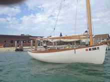 It was a beautiful night with great stars. Monday morning I woke first at 2:30 am and then woke Kevin. We had anchored a little too close to land and at low tide had some trouble with grounding on our way out. A nine mile flasher on Cosgrove Shoal guided us to the deeper water and we were on our way in a light easterly. I was steering by Orion to keep us south of the Quicksand but a strong set to the north brought us back on the shallow bank. At one point, I heard the tide rushing over a shoal spot but our catboat had plenty of water everywhere on that bank.