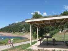 | In July we went back to Vallecito Lake, for our summer vacation. We rented a cabin again. The peace and tranquility there draw us in and we can’t resist. And of course, I love sailing there. We went in June the previous year and the reservoir was full when we got there. This year we went a month later and the water level was down a lot from last year. I understand from talking to some of the locals that the lake didn’t fill up to it’s normal level this year. Much of the islands and shoreline visible this year were under water last year. It rained every afternoon we were there. We sailed in the mornings, took a break for lunch and sailed again. We had a week there, but spent one day in the cabin because it rained all day and took another day to visit Mesa Verde. We had a nice time hiking around at Mesa Verde and looking at the ancient dwellings. It was a great history lesson and we had some fantastic views. There was a full moon while we were at Vallecito. With the balcony of the cabin looking out over the lake, it was magical. After the sun went down we could see the glow of the moon on the water of the lake as well.