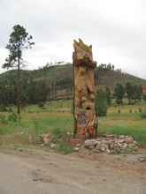 We heard reports of bear sightings in the area before we got there. Fortunately we didn't run into any live bears, but got a kick out of this carving. |