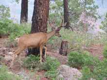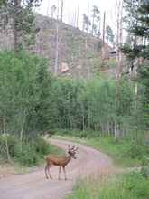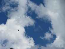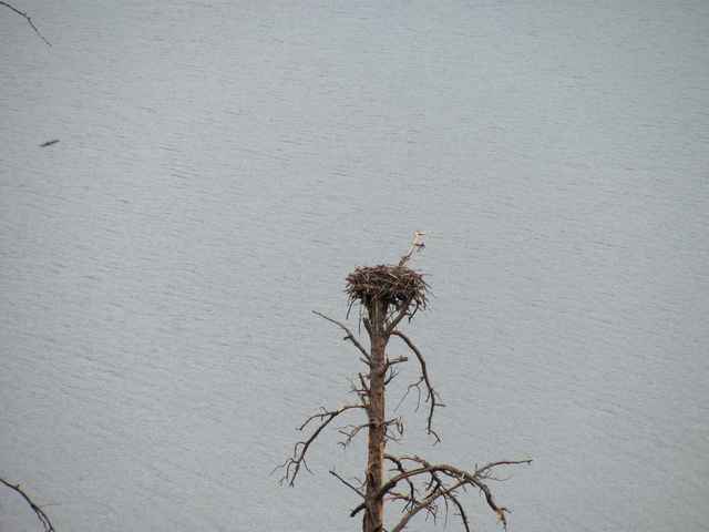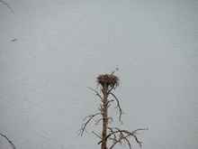 We were fascinated by this large bird's nest built at the top of a dead tree. The nest was visible from the road up to the cabin. We saw the two birds in the nest a number of times but were never able to get the camera out before they flew away. |