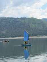 Another picture of the puddle duck with a reflection of the sail on the water. |