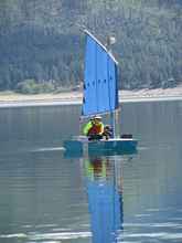 The blue sail is my puddle duck headed away from the beach by the boat ramp. |