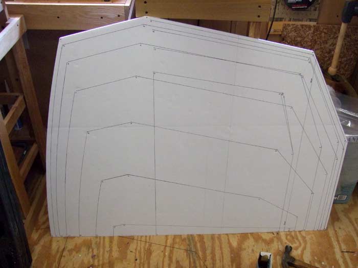 At this point I had studied the plans sufficiently to get started on the real work of building the boat. The beginning step was to get the table of offsets turned into real frame/station shapes. This was accomplished by drawing these full sized on poster board. I think it is very informative to get a look at the shapes of the frames to get a better feel for what the boat should look like. I will stress that this process should be done as accurately as possible as the entire boat shape will be determined by these simple lines. Take your time and double check every measurement.