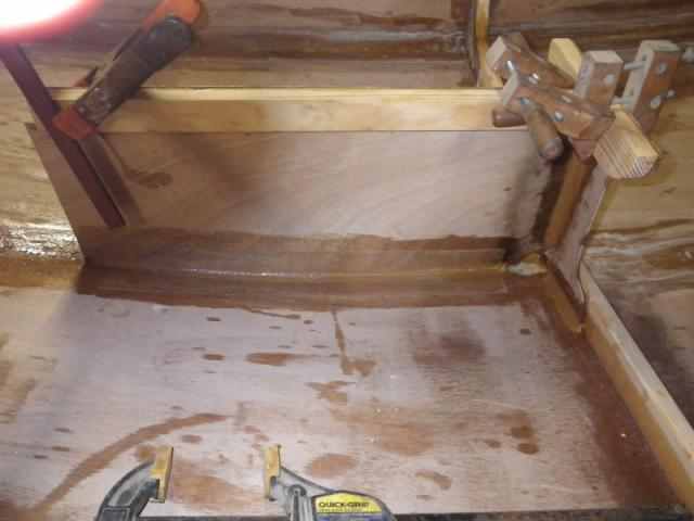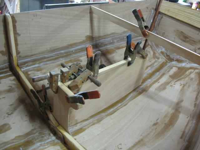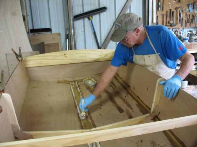 Then we get to play with the epoxy. Filleting and taping the interior seams. |