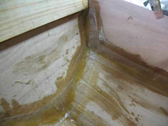 Here I'm using up some excess filleting material on transom corners. I always leave a few small jobs so I can use up excess, or try to anyway. |