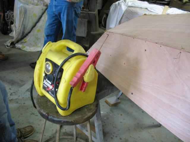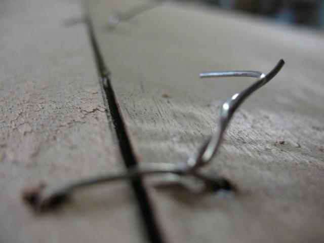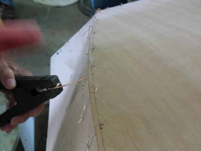 And "POP" the other side. All it takes is making a spark. Too long and the wire goes red hot, and scorches the wood. Not a problem if the boat is to be painted.