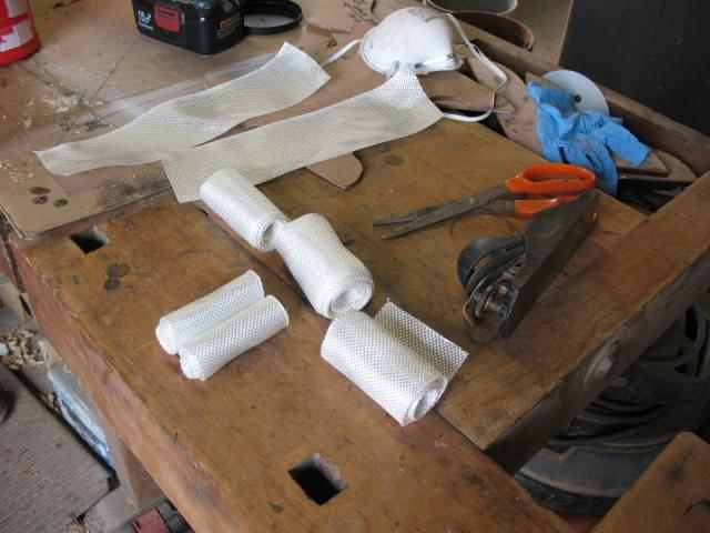 Then you pre-cut the fiberglass tape, roll it up and lay it out in roughly the orientation. It'll go in, so can be just grabbed as needed. |