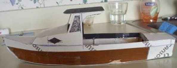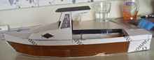 The skiff had a rather flat sheer and I wanted to improve the looks so I built in more sheer. I decided to attach the new sides, made from luan, onto the rails rather than try to splice them into the old sides. I wanted to retain the stiffness if possible. The topsides and the cabin were cut out based on the dimensions of the model so I would be sure of the lobster boat effect being in the right proportions.
