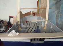 I built a model of the skiff first and then added the new parts in the order of the build. It looked good so I wrote the dimensions on the model and actually used it to build. I began construction by sanding the rails and the stern section so the new parts could be added.