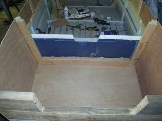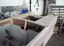Next the framing for the rear deck was added, which had the same curvature as the other new parts. The new rails were mounted and shaped. Next the screw holes on the entire exterior were filled and sanded.