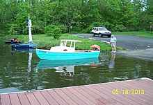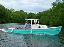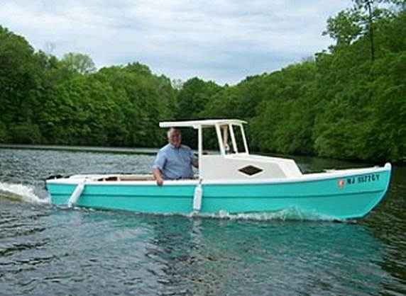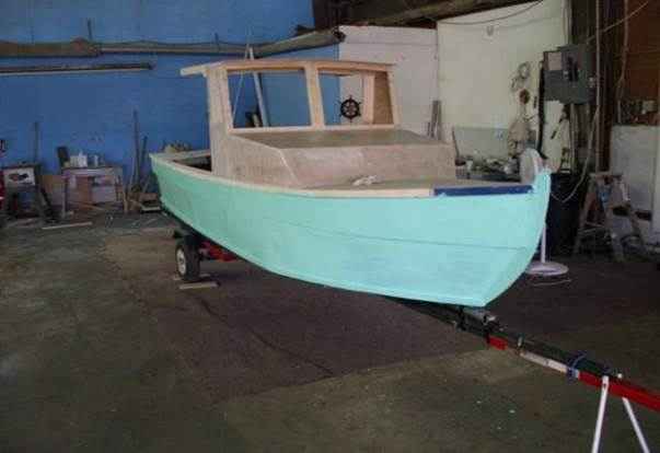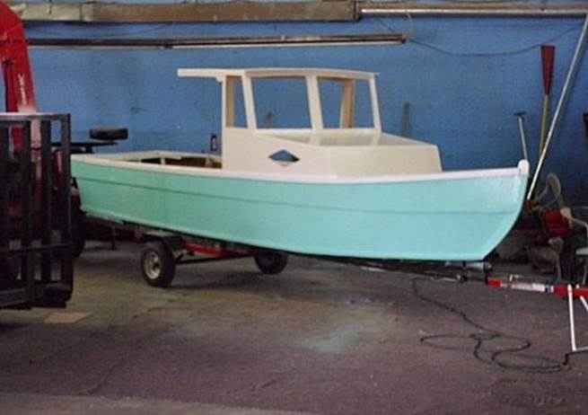 The sail rig didn't work out so well so I motored about for the rest of the event. Later in the fall I bought a trolling motor and battery and used her that way for the rest of the season. Having finally secured employment full time in the late fall I started thinking about the 2013 event. I wondered what I could do with the skiff to make it a little bit larger and more comfortable and perhaps able to take a larger outboard. I spent much of the winter drawing on the computer using the existing skiff as a basis hoping to come up with a design that would meet my needs for 2013. Since I am a native of Maine I thought a lobster boat replica might be kind of fun to have.