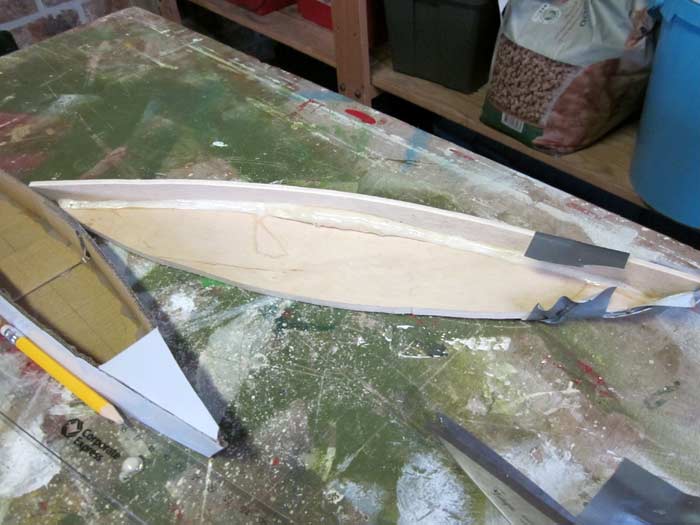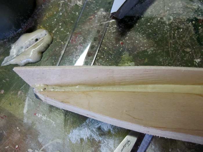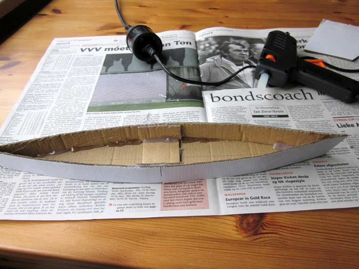 Using a hot-glue (hobby) gun to make a boat out of it (this is kitchen-table-boat-building!) |