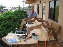 I really am not a dummy, although you can't convince my wife of it, but my wood working skills have been taxed to the extreme. I had planned to hire some local help to do this or that, but just three days into the project I vowed not to let anyone near my boat with a saw or hammer. I wouldn't trust anyone to follow the boat plans I’m working from; the exception being my retentive father whose skills far exceed my own. He is likely the only other person I know who has enough built in doubt to check the plans five times before cutting wood, and creatively fill in gaps with sound judgment.