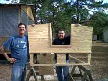 Good friends and equally good help make boatbuilding fast and fun. The first day ended with all of the bulkheads and frames built. Over the next few weeks the boat took shape.