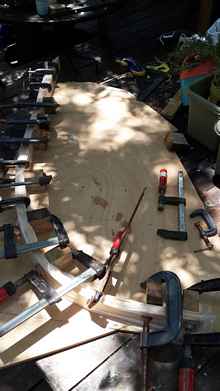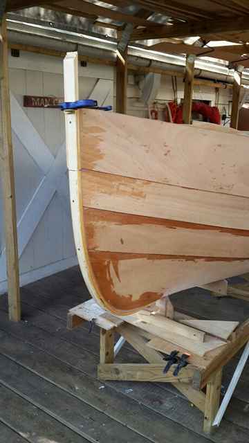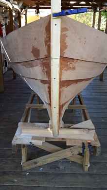 | To start a small boat build without much risk, I built a Sam Devlin S&G 8.5' Sandpiper and called her "Nemo". The build was very instructive and I gained some boat building confidence. Once the hull was stitched up I realized that the boat was too small. Nevertheless it was a good idea to start out small so that the project did not take up too much space in the garden to evoke too much resistance from the family. Today I sail Nemo regularly with my 6 year old; It takes 20 minutes from the house to the sea. The sail rig is a very small gaff rig without boom. The sail was made by Duckworks and works perfect.